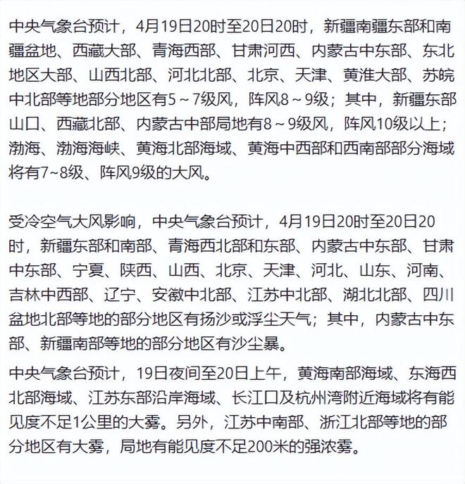 19日夜的北京,可能还会受到沙尘的影响。到了20日下午,沙尘东段可能推进到长江中下游沿线。而沙尘的西段19日18时已经突破秦岭大巴山,进入到四川盆地;趋增,广元的PM10浓度接近“爆表”(*PM10≥600微克/立方米)。为此,气象台已于19日18时继续发布大风黄色预警和沙尘暴蓝色预警:同时,也继续发布了大雾黄色预警。