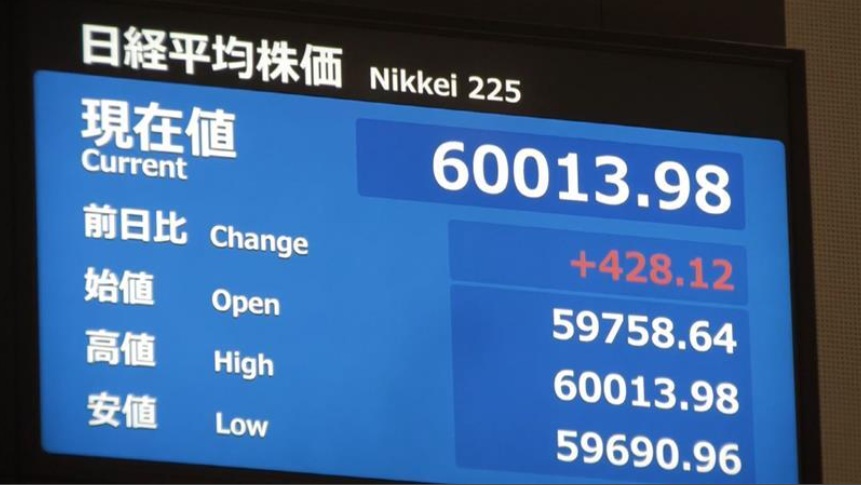 23日,东京股市日经平均指数开盘后便一路走高,一度创下史上首次突破6万日元的纪录。