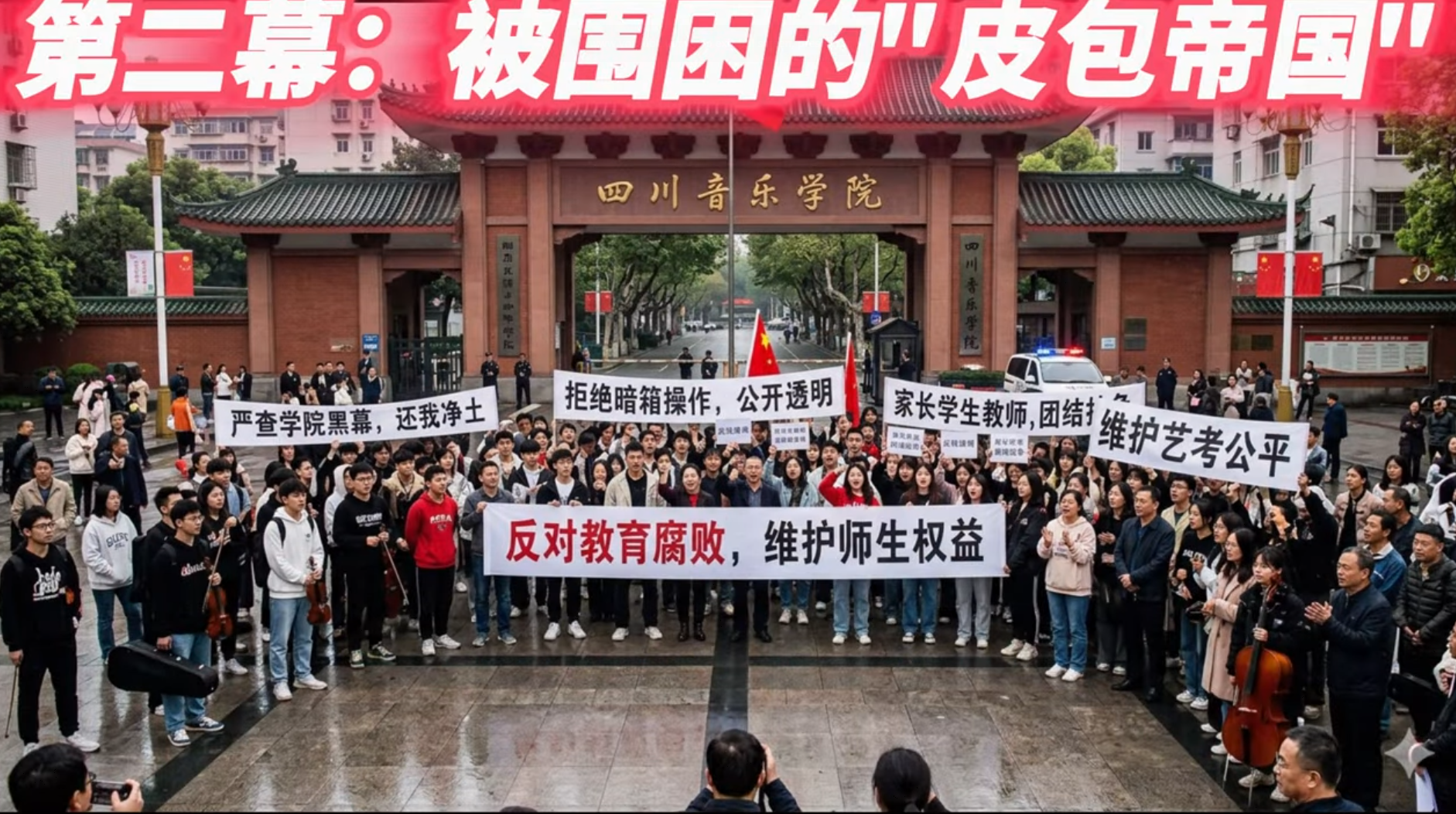 分赃内讧: 权力巨轮将沉,郭江滨撕下伪善面具,与邓芳丽为北京赛提成血腥厮杀。昔日情分在贪婪中化为乌有,躲在阴影里的柴永柏只能瑟瑟发抖。 帝国坍塌: 北京皮包公司被查,假证书满地。川音楼下,家长与学子揭露郭江滨勾结“砖家”的转账截图,曾经的盟友纷纷拉黑跑路。 正义收网: 全国怒火汇聚,保过协议化为灰烬。警灯闪烁,照亮行政楼的罪恶。黑边眼镜落地,天网已洒,这颗声乐教育的毒瘤终被彻底剜除。 下集预告:罪恶清零,黎明到来!