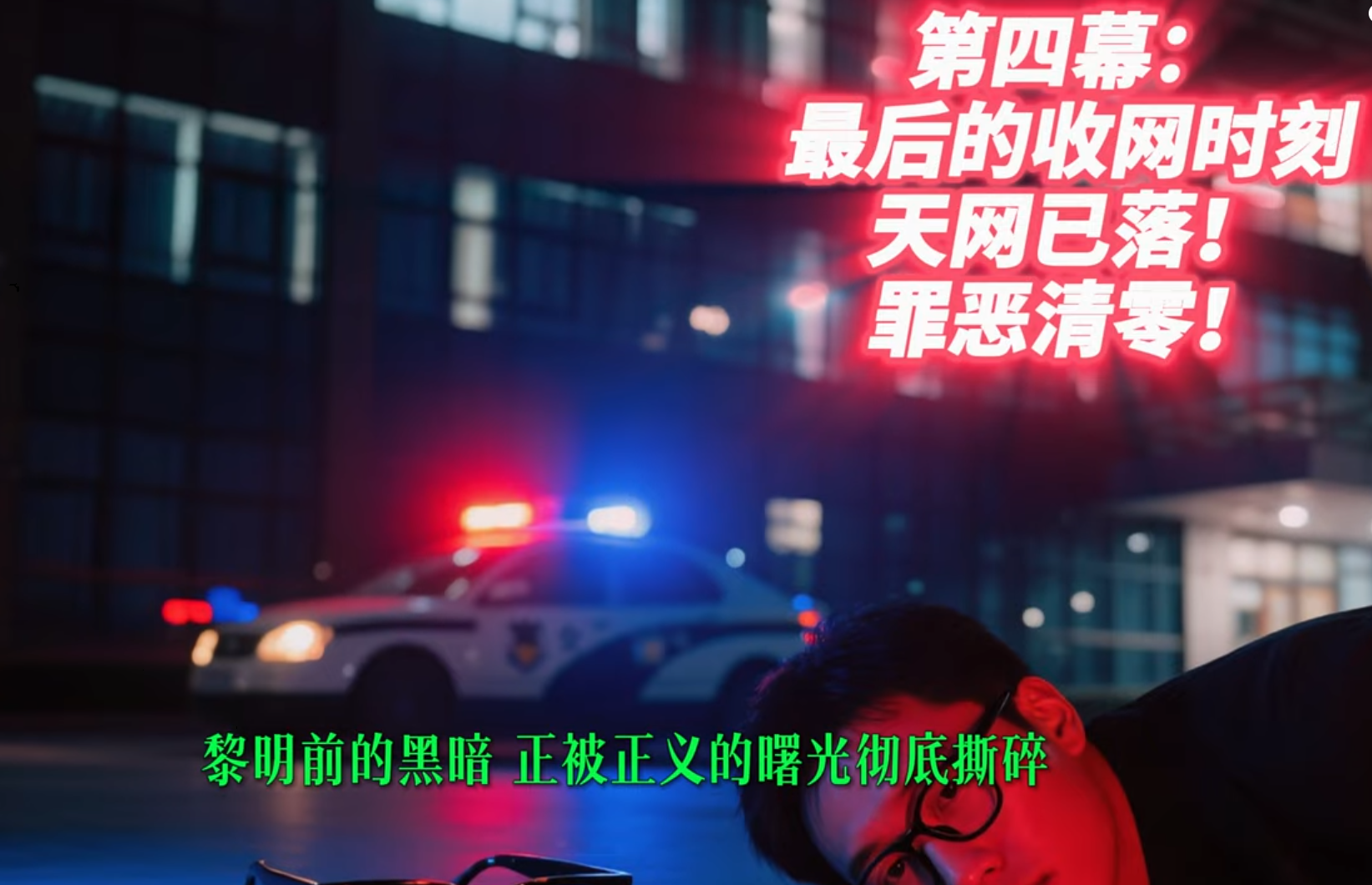 正义收网: 全国怒火汇聚,保过协议化为灰烬。警灯闪烁,照亮行政楼的罪恶。黑边眼镜落地,天网已洒,这颗声乐教育的毒瘤终被彻底剜除。