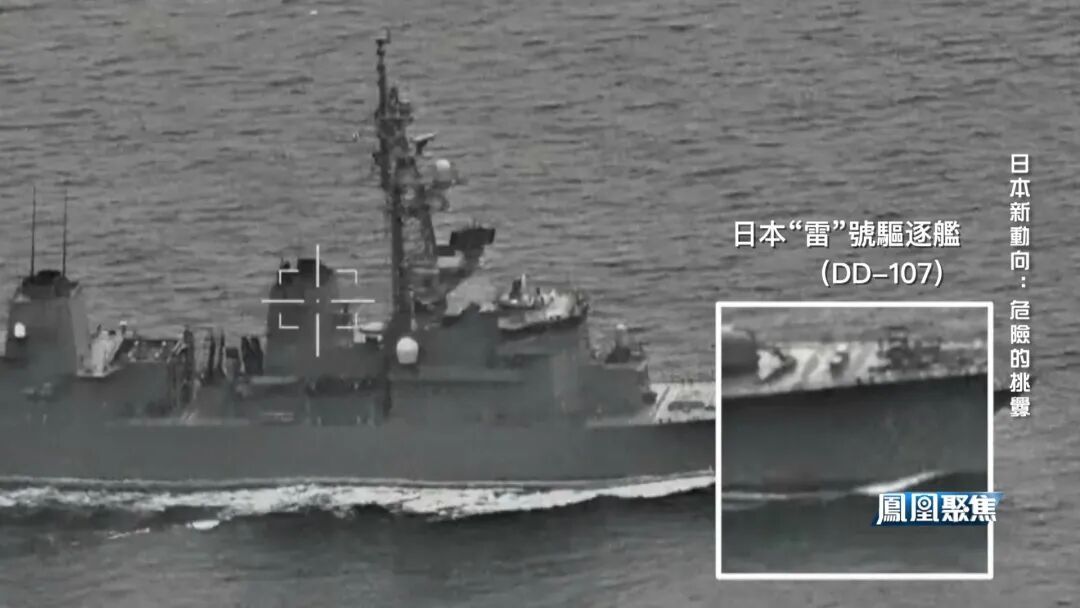这是中国媒体公布一段无人机拍摄的画面,揭露了日本一次极具挑衅意味的航行。4月17日,日本海上自卫队“雷”号驱逐舰过航台湾海峡,舰上携带90式反舰导弹。