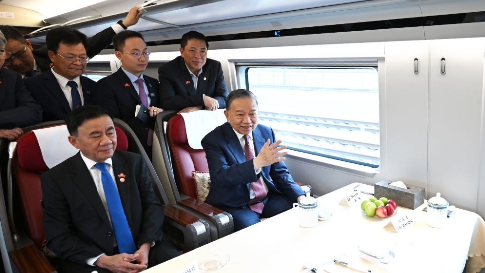 越共中央总书记、越南国家主席苏林访华期间,除签署一批合作文件外,还干了一件特别的事情:他携随访团队全程乘高铁,累计2000余公里、12小时,创外国领导人访华高铁出行时长之最。