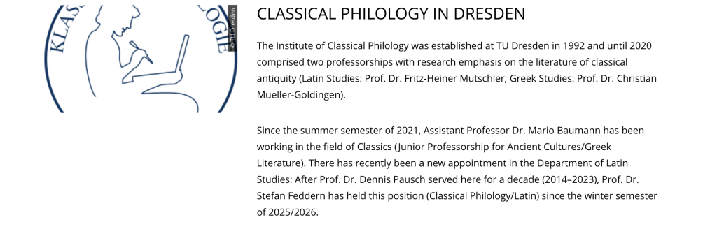 德累斯顿工业大学古典语文学系简介。穆启乐教授是该系两位创始教授之一。