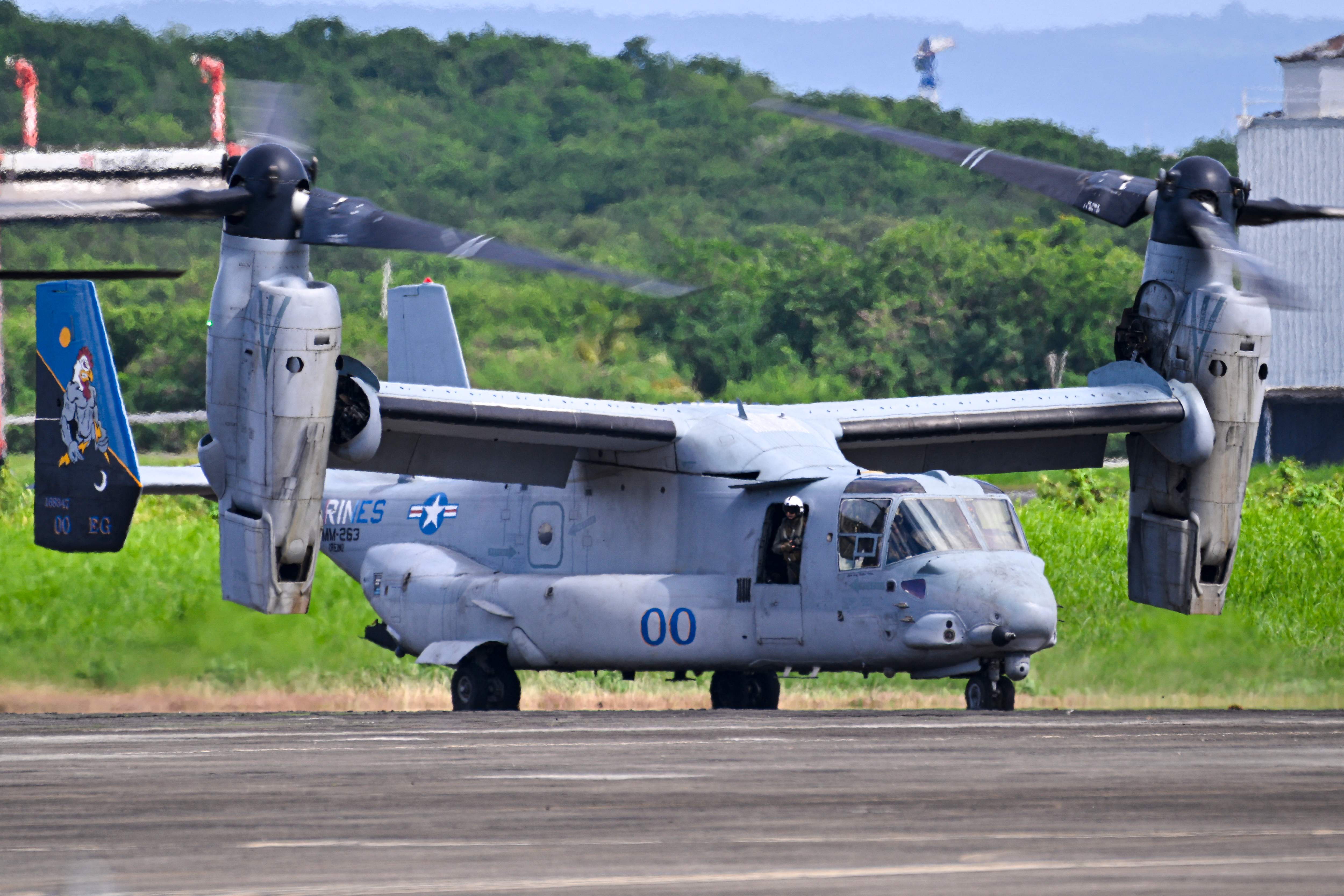 9月13日,一架V-22“鱼鹰”运输机在波多黎各罗斯福路海军基地滑行。(法新社)
