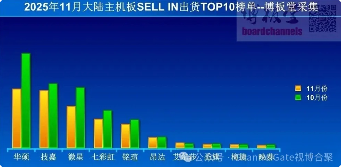 新闻3:2025年11月中国大陆主板出货量,御三家暴跌,存储产品价格暴涨影响明显