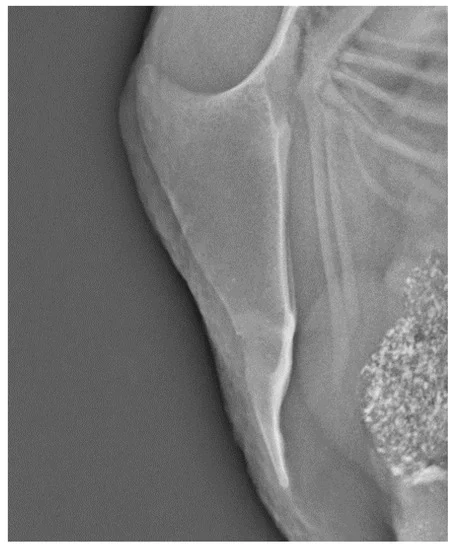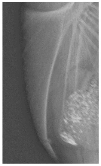 这是多处骨折的龙骨( 63 周龄):