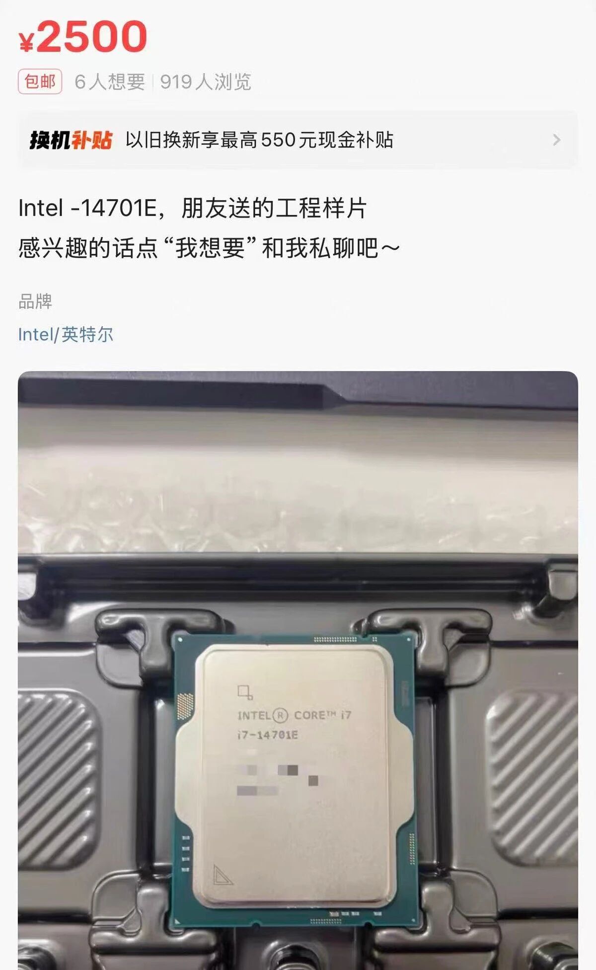 闲鱼上i7-14701E卖2500元一颗,还是QS测试样片,这价格零售的i9都买来了,一整套更先进的Ultra 7-265K+B860套装都有很多很多方案可以选了。