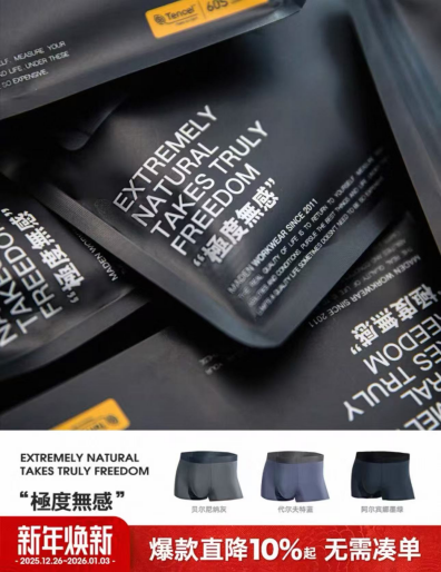 马登工装 6莫代尔抗菌透气平角内裤,19.9元,属于顺手带的高性价比单品,60支莫代尔贴肤舒适透气,弹力好不勒腰,水洗不易不变形。
