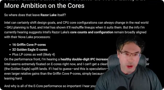 RGT 声称,Griffin Cove P 核心相比其 Nova Lake 前代产品,IPC 性能有望实现“两位数的显著提升”。