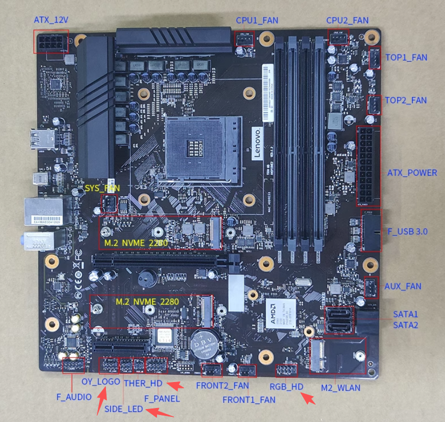 6. 如果你安装的4Pin温控风扇出现转速异常,持续转速满载(可能风噪会比较大),可能是机箱内温度监测异常所导致,请淘宝上花10块钱购买一根“拯救者温控线”,并插在上图中“THER_HD”这个插针上;如果你购买的就是那种廉价的恒定转速不支持温控风扇,反而不可能出现这个毛病。
