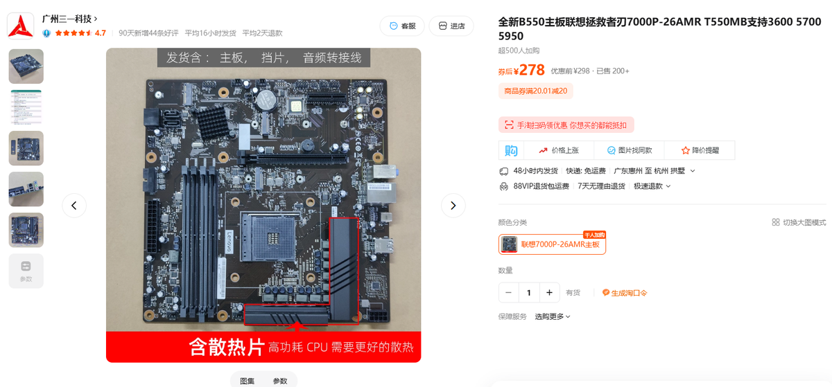 最近DDR5内存大涨,支持DDR4的处理器热度再次回升,这其中采用AM4接口的联想B550主板有了不小的市场热度,淘宝、闲鱼也有不少卖家在销售这款产品。