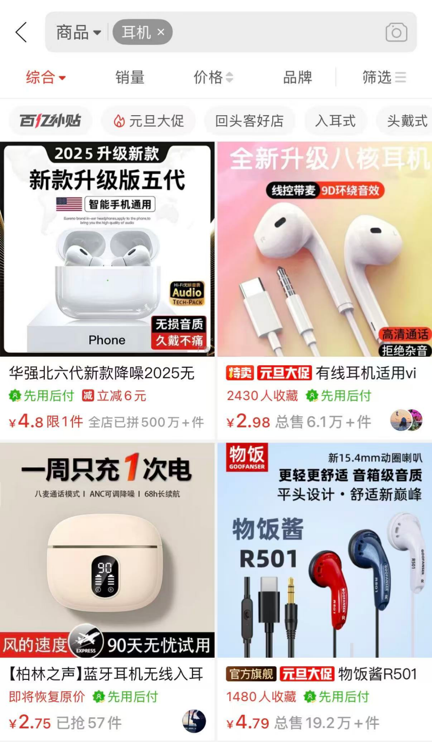 耳机的价格下限同样可下探至2-10元,入门级的入耳式耳机、头戴式耳机,虽然音质表现一般,但能满足语音通话、基础影音等需求。现在造型仿制苹果airpods的产品也是烂大街,便宜的型号还不到10块钱,大大拉低了无线耳机的入门门槛,就连玛莎拉蒂联名的产品也就几十块,上述产品的音质就很一般了,听音乐就是高音上不去,低音下不来的那种,适合日常“听个响”。