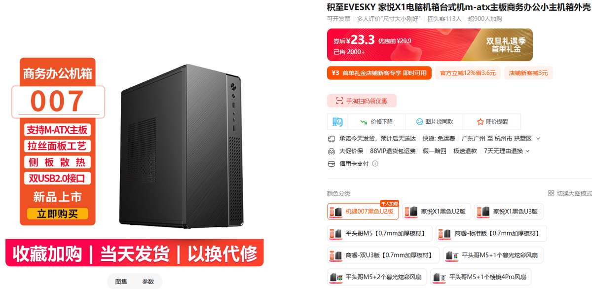 机箱作为电脑硬件的“房子”,核心功能是保护硬件、提供基础散热风道和架构支撑,其价格下限极低,最低甚至可以“0元购”,比如用大的“鞋盒”来替代。全新机箱中,诸如一些二线、三线甚至不指名品牌的小体积M-ATX产品价格普遍低廉,价格仅20-50元,采用简约的紧凑型设计,虽然材质以塑料和薄钢板为主,但足以支撑常规低端硬件安装。