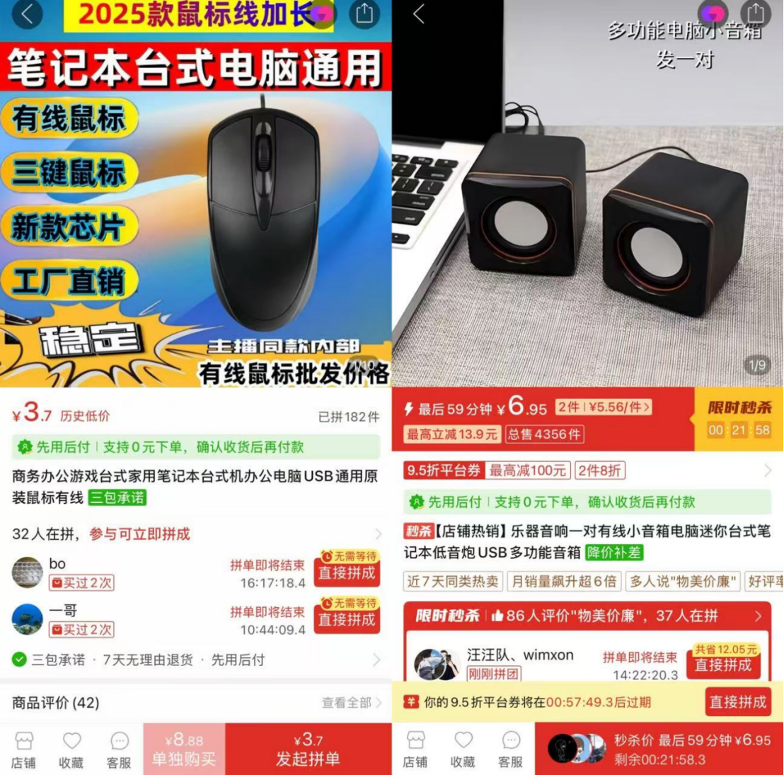 只要你不挑,9.9元买鼠标、买键盘、买音响没有任何问题!