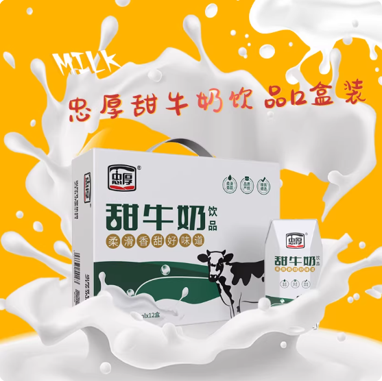 ⑦.【天猫】忠厚甜牛奶整箱200ml12盒