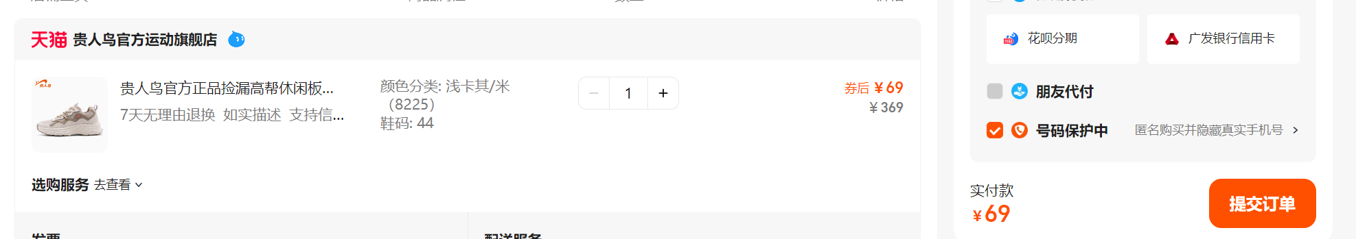 ⑳. 【天猫官方店】贵人鸟官方正品捡漏高帮休闲板鞋男士德训鞋运动鞋轻便软底跑步鞋
