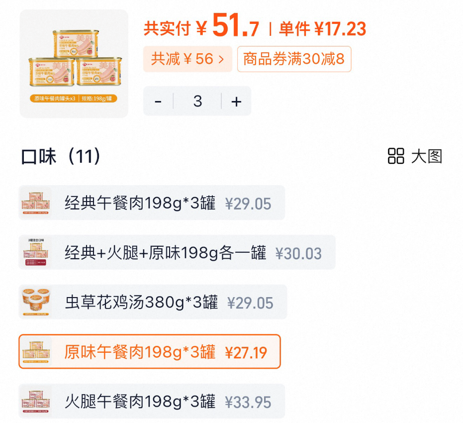 领56元优惠券下单三份,到手51.7元9罐