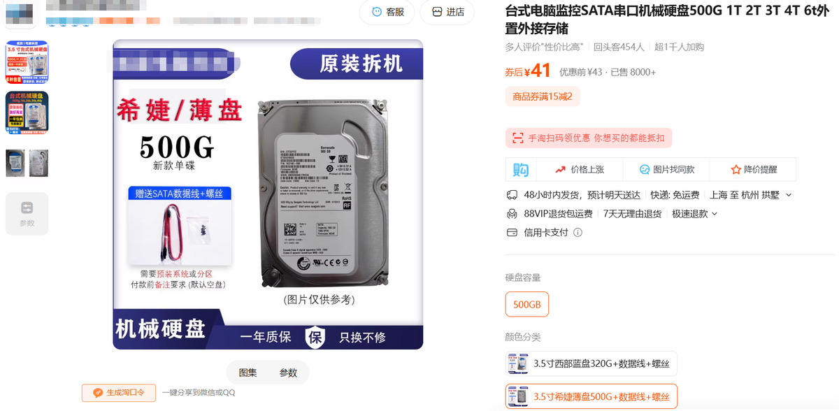 为了控制成本,固态硬盘仅选择了256GB容量的版本,适合作为系统盘,这一容量比较小,如果确实买不起512GB的版本,后续可以在淘宝上花40-50块钱买一块500GB容量的拆机机械硬盘来扩充存储空间,总之办法很多。