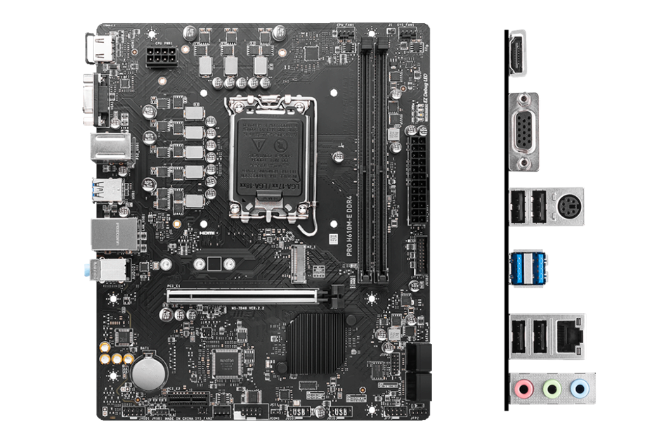 微星PRO H610M-E的CPU供电为6+1+1相,可以满足酷睿i5处理器的高负载稳定运行,这个板子的优点就是微星预留了MOS供电散热片的固定孔位,你可以在淘宝上见到有卖家在销售自己定做的散热片,安装之后主板的颜值提升,供电能力大概可以提升20%左右,可以稳定带i5-12600KF这一级别的处理器(120W-130W)。接口及扩展方面,其具备4个SATAIII、4个USB 3.0(2后置+2前置)以及1条速度为3.0x4的M.2固态硬盘接口。H610的缺点就是USB 3.0接口比较少,如果不想浪费,建议选择具备完整2个前置USB 3.0接口的机箱,比如积至的磐石S1。