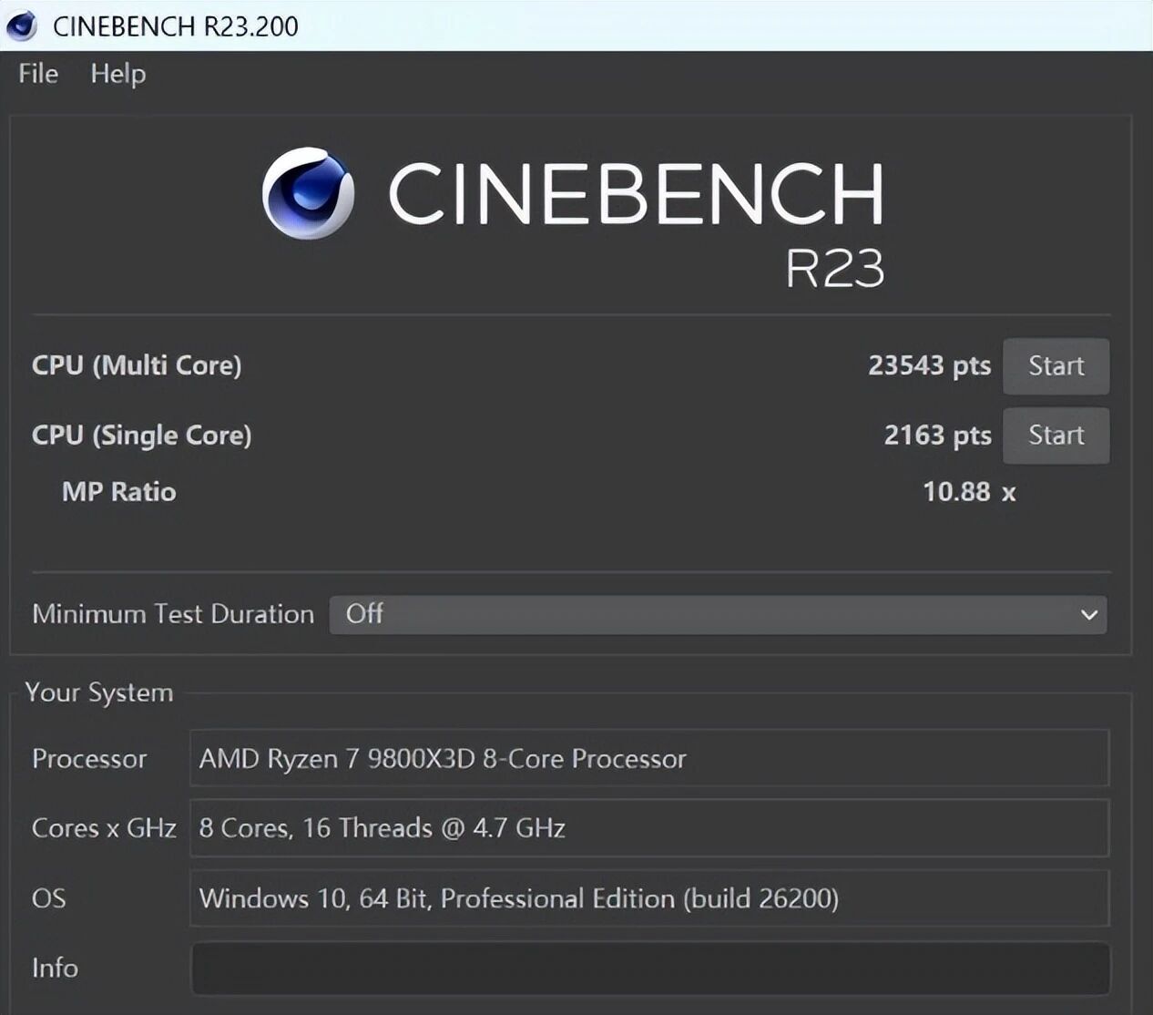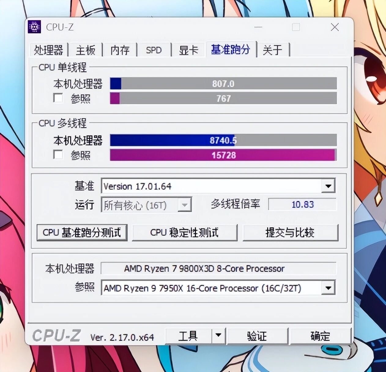 98X3D的成绩如下,单核多核都不错,比较均衡的选择。