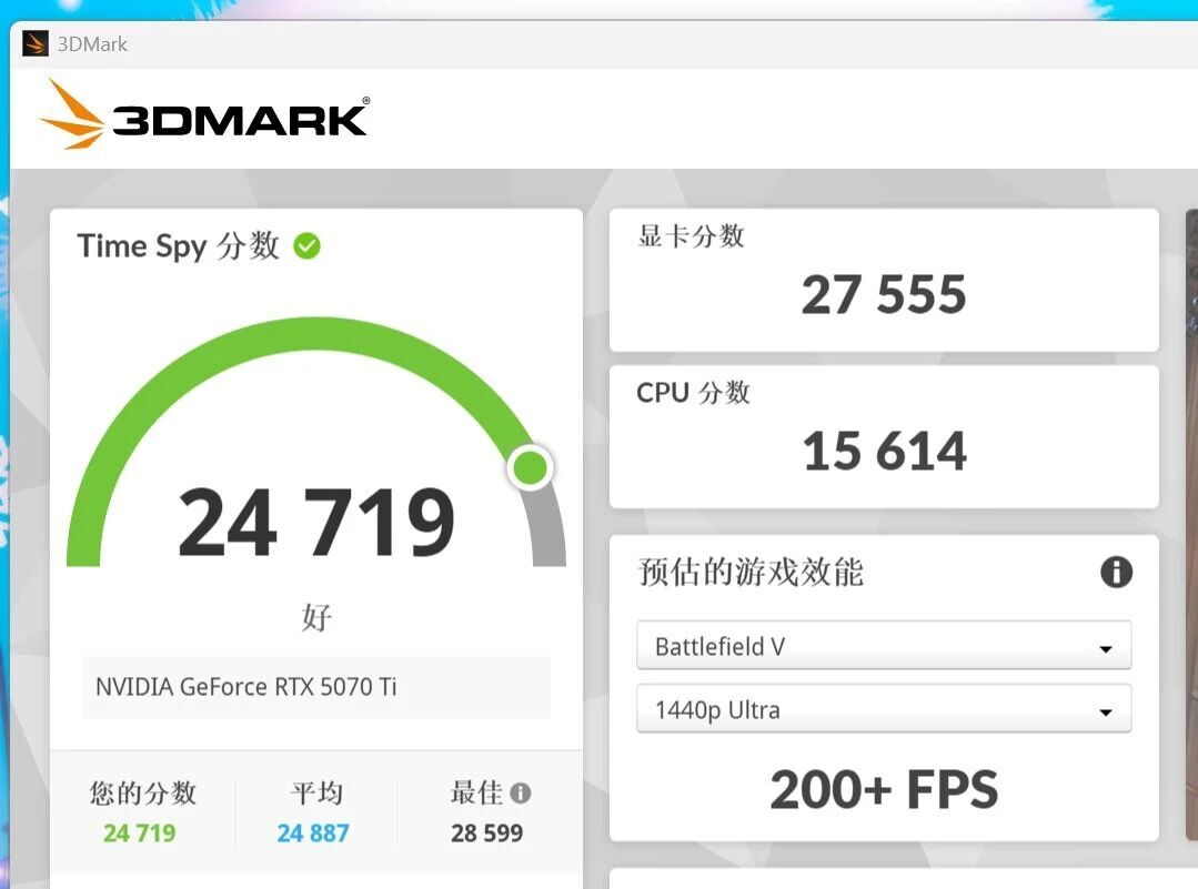 3Dmark TS的GPU分数有27500分,5070ti应付4K游戏还是没啥问题的。