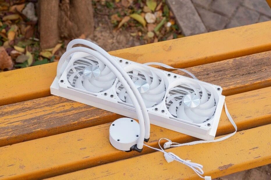 装好屏幕之后的水冷如下,颜值还是很OK的,并且原装扇子看规格很不错。