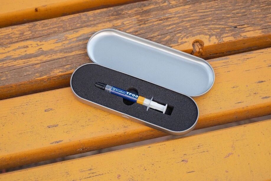 除了水冷外,朋友还额外送了一个银欣的 TF03硅脂,看着相当不错,还用了铁盒包装。
