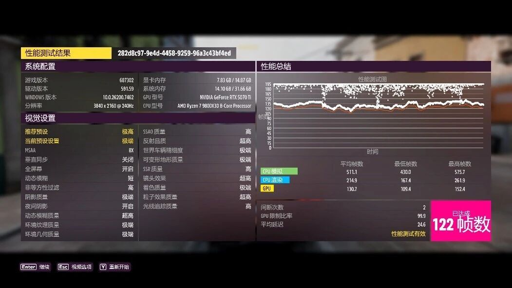 简单跑了几个游戏,CS2,4K高画质,平均263帧。