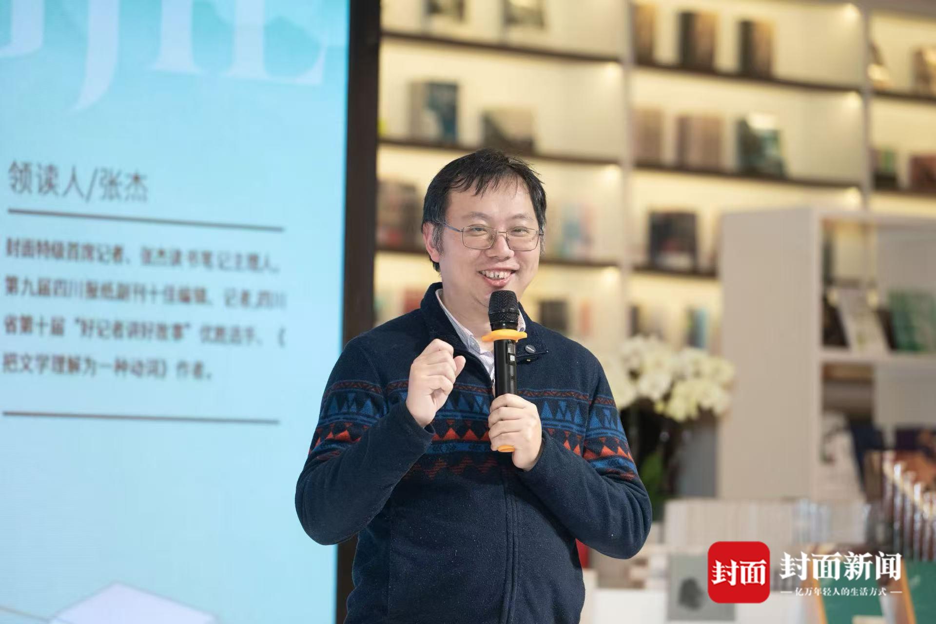多次专访两位先生的记者、“张杰读书笔记主理人”张杰在台上分享了更多书页之外的印象。她回忆2024年初和封面新闻同事一起探望马老时,马老当时自称耳目不济,却仍手持放大镜伏案阅读,笑言“不能总是无所事事”,那份对求知的渴望和强大的生命力令人动容。此外,她还提到,马老曾坦言自己在文学上“没有终身成就,只有终身遗憾”,谦虚品格令人敬佩。
