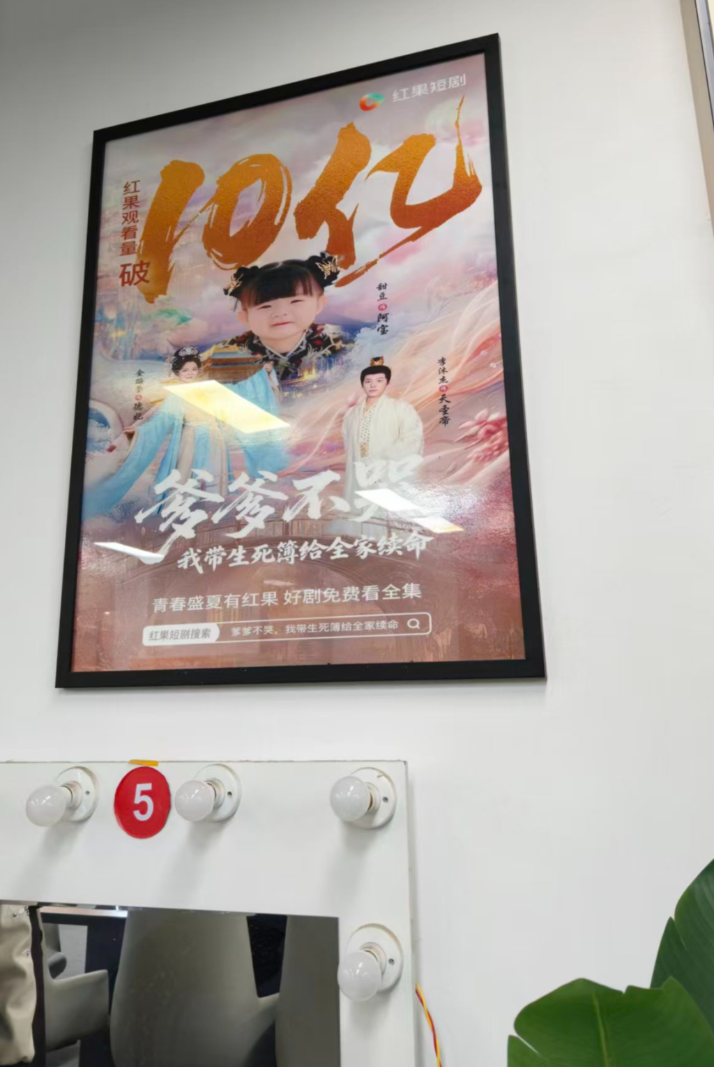 德玉影视办公室,破10亿的萌宝系列短剧海报悬挂在墙上。(本文所有图片为记者戴媛媛拍摄)