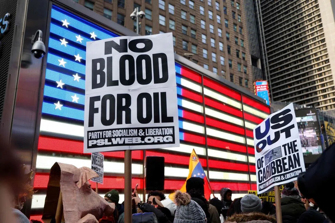 摘要:1月3日,民众在美国纽约时代广场举行示威游行,抗议美国在委内瑞拉的军事行动。(法新社)据四名接近委内瑞拉石油运输业的消息人士星期六(1月3日)TankerTrackers.com网站称,没有油轮星期六在委内瑞拉主要石油港口何塞港装载货物。