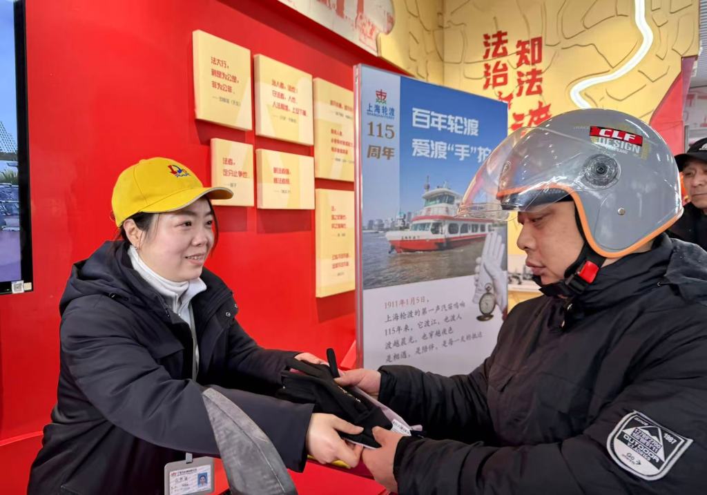 2026年1月5日,上海轮渡为庆祝成立115周年,在全市17条对江客渡航线上,同步向过江乘客赠送爱心手套。本文图片均为 上海轮渡 提供