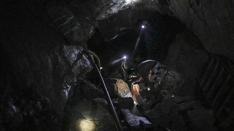 当地时间2023年4月28日,委内瑞拉玻利瓦尔州,一名金矿工人选择岩石,从地下矿山带到地面。 视觉中国