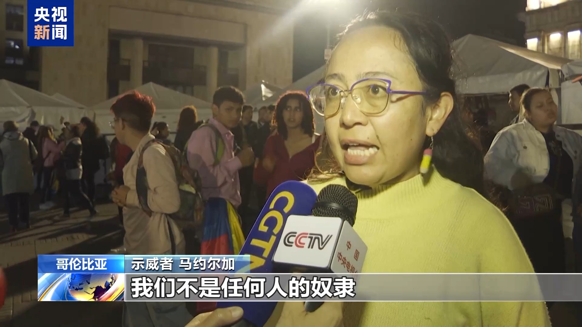 总台记者 邓雪梅:我现在是在哥伦比亚首都西蒙玻利瓦尔广场,可以看到成千上万的哥伦比亚人在佩特罗总统的号召下,拿着国旗在这里举行游行示威,抗议美国对该国的军事威胁和内政干涉,而这样的行动在全国各大城市同步举行。
