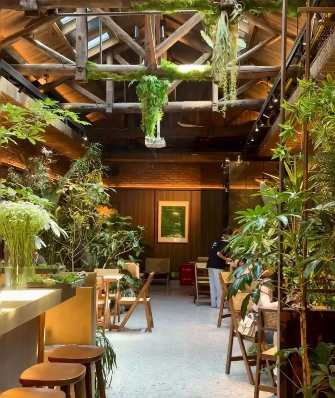 都市人向往自然,枯树枝、假山石、绿植墙构成的山野火锅仿佛成了临时平替。