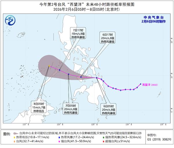 预计,“西望洋”将以每小时20-25公里左右的速度继续向偏西方向移动,之后移入苏禄海,强度缓慢减弱,8日移入南海东南部偏东海域,尔后逐渐减弱消失。
