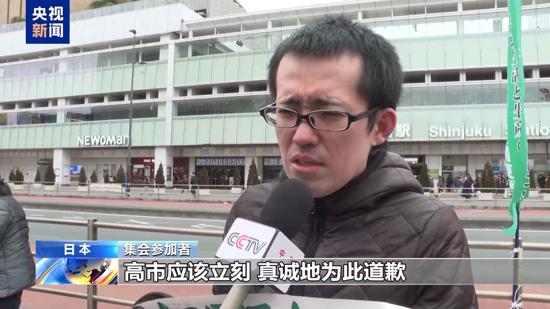 当地时间7日,日本民众在东京新宿举行集会,批评日本首相高市早苗错误言论,反对日本政府持续推进军备扩张的做法。集会参加者:日本政府已经承认台湾是中国的一部分。我就在想,为什么现在的首相还会说出这样的话,真的希望不要再有那样的错误发言。希望高市早苗能撤回发言或辞职。我认为高市引发了非常严重的问题,希望她能够切实承担起责任。集会参加者:日本国内对高市感到愤怒的人有很多,如果真的把国民的生活放在第一位,日本政府就应该把外交做好,明确表示不挑动战争,遵守和平宪法,这才是最重要的。集会参加者:高市发言是在干涉中国内政,高市应该立刻真诚地为此道歉。集会参加者:日本加强军事化很危险,战争已经结束几十年了,但对过去战争的反省和清算至今都还没有完成。驻日美军设在冲绳县宜野湾市的普天间基地周边井盖近日被发现冒出大量白色泡沫。分析结果显示,泡沫中所含全氟和多氟烷基物质浓度远超日本暂行国家标准。对此,集会参加者也表示担忧。集会参加者:不仅是冲绳,在东京的横田基地等各地的美军基地也在进行灭火训练,灭火训练后排放出来的残留物没有被回收,而是直接渗入地面,所以才会出现有机氟化物的污染问题。这些物质会从地面渗透,流入河流和地下水中。集会参加者:冲绳的环境问题不是最近才出现的,而是从美军基地进驻以来就一直持续到现在,包括环境污染在内,有机氟化物的污染问题也长期存在。有机氟化物的危害不会马上显现,它会在人体内不断累积,甚至对胎儿产生影响。