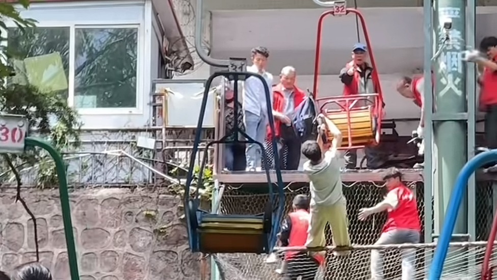 景区的工作人员告诉潇湘晨报晨视频记者,这名男性游客当时带着孩子坐缆车下去,刚出站台时他突然改主意要下车,“不知道他当时咋想的,可能是有点怕他觉得不安全。”在场的人员立刻关闭了缆车,缆车滑行几米出了站台,但刚好停在了安全网的上边。工作人员赶紧把两人解救下来,人没事就是小孩受到了惊吓,后来进行了安抚,两人坐了一会就走了。